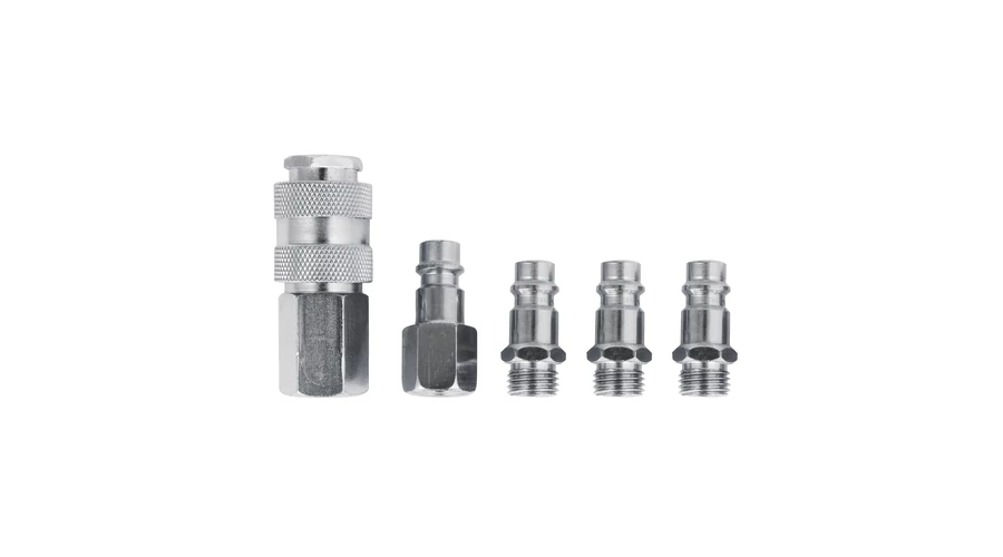 Pneumatski priključci Hoteche 1/4" set 5/1 namenjeni su za brzo, sigurno i pouzdano povezivanje pneumatskih alata i sistema sa kompresorima. Zahvaljujući standardnom priključku 1/4", kompatibilni su sa većinom pneumatskih uređaja koji se koriste u radionicama, servisima i industrijskim okruženjima.