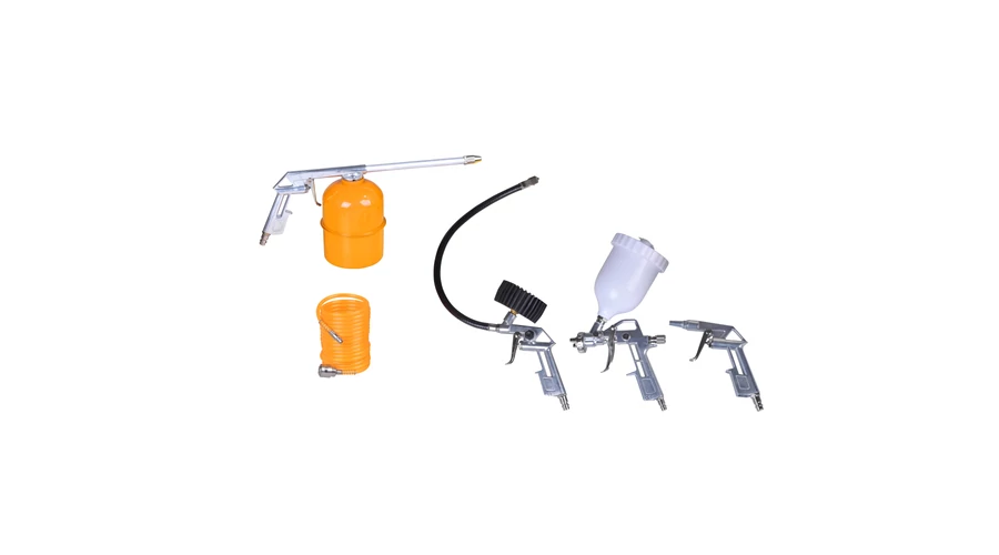 Set alata za kompresore 5/1 pruža sve što je potrebno za profesionalnu i kućnu upotrebu kompresorskih sistema. Ovaj praktičan komplet je savršen za radionice, servise i garaže, omogućavajući lako čišćenje, pritisak, prskanje i napuhavanje različitih predmeta.